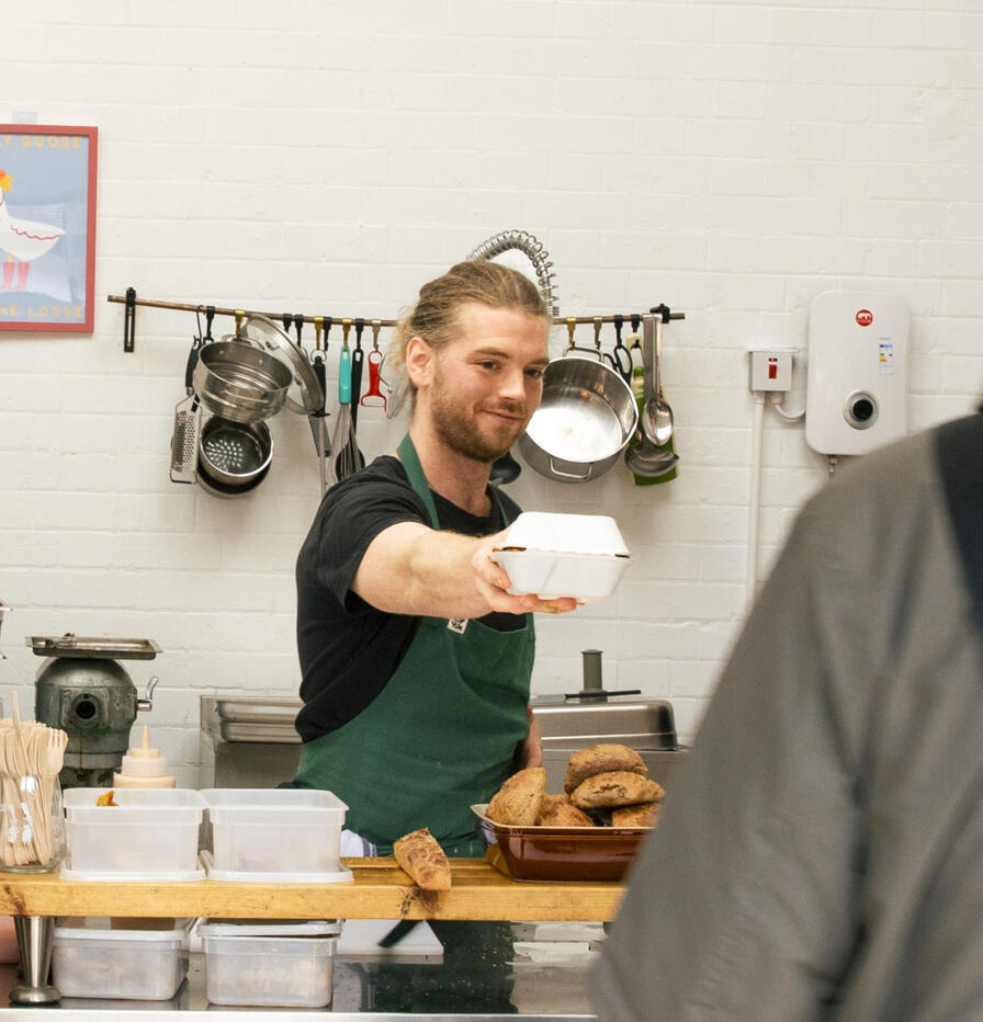 More opening times coming soon!We’re a plant-based kitchen rooted in care, creativity, and community. Everything is made from scratch with mostly organic, seasonal ingredients and minimal packaging. We cook for everyone and keep things low-impact, from second-hand kit to sustainable sourcing.We're dog-friendly (Dexter’s got a window seat), pun-loving, and proud to blend food with art, music, and climate action. As a not-for-profit, we make good food accessible—because nourishment should be joyful, inclusive, and just.